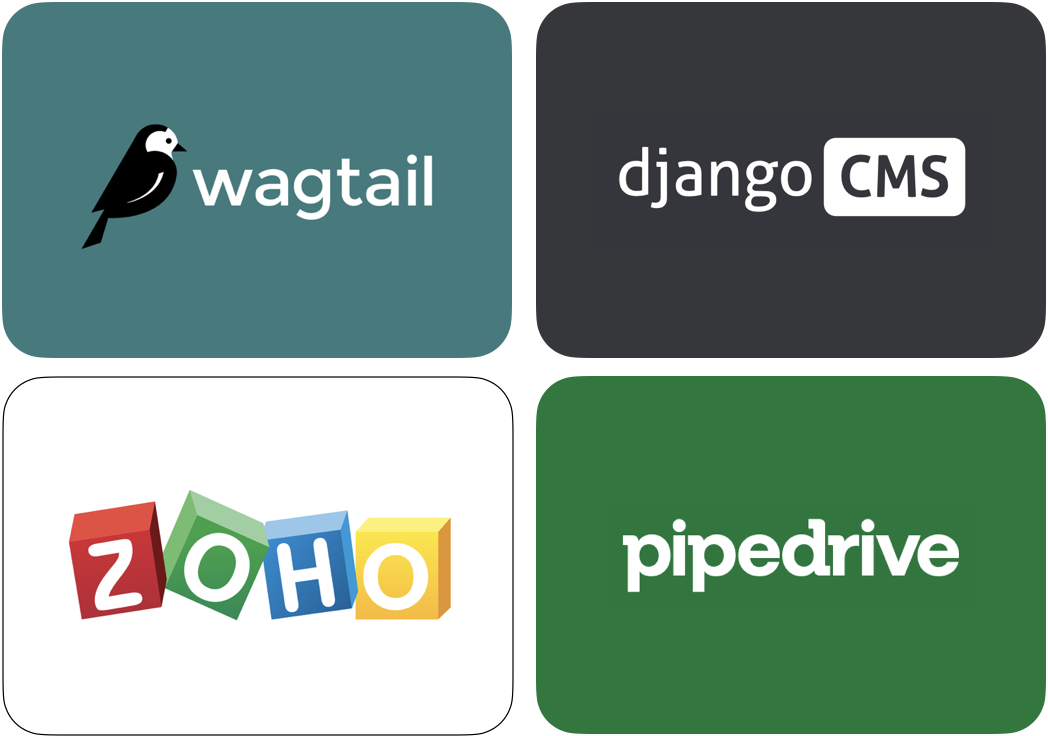Our integration of Content Management Systems and CRM solutions, such as Wagtail, Pipedrive and Zoho Creator improves the functionality , data transfer and user experience of web applications.