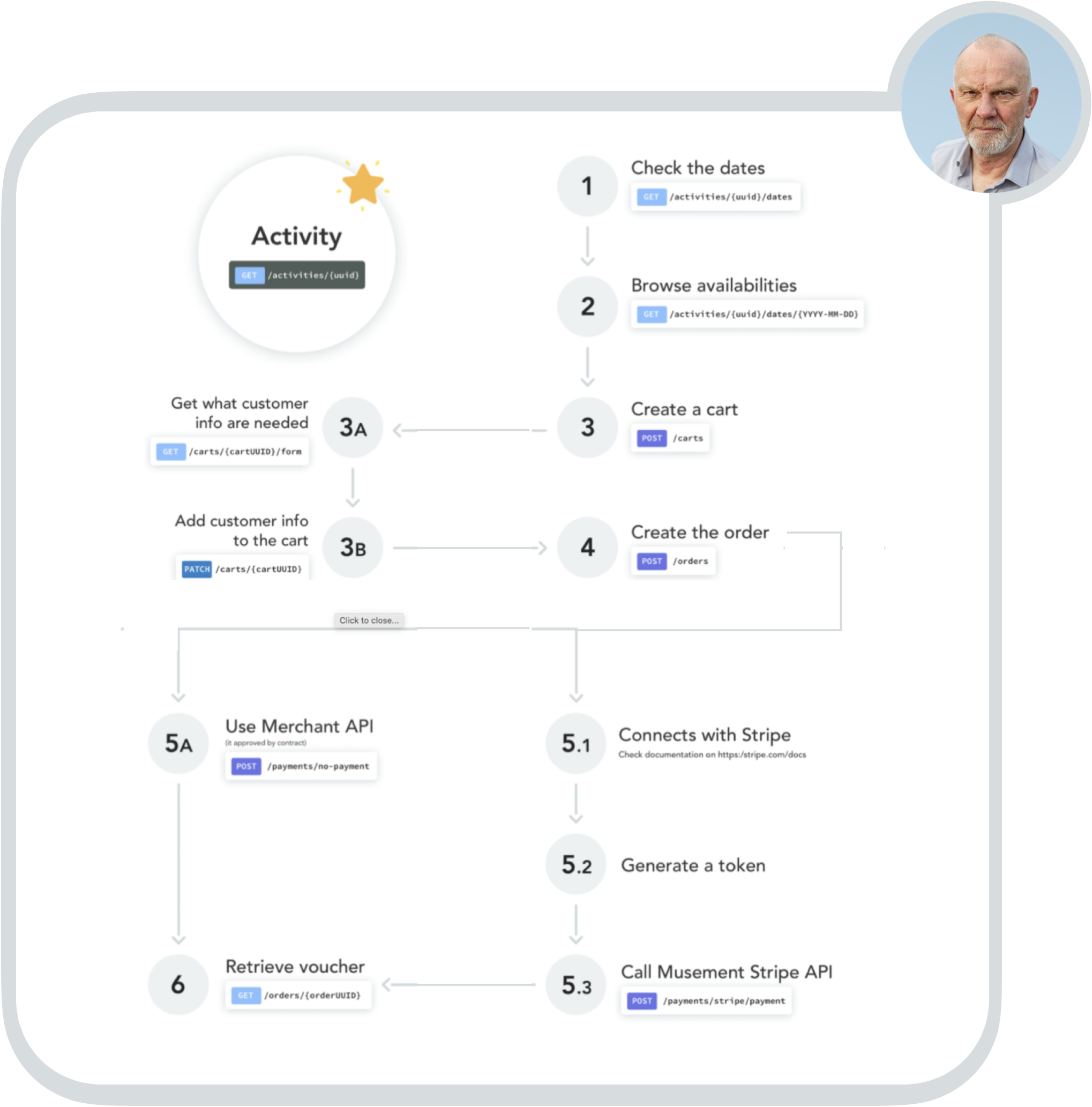 "Integraties met boekingssystemen brengen enkele uitdagingen met zich mee. Elk systeem is bijvoorbeeld -- nou ja, hun eigen systeem, elk met hun eigen documentatie, wat geweldig is, maar elk met hun eigen eigenaardigheden, wat iets minder geweldig is. We hebben een aantal hele complexe integraties voor onze klanten gedaan, waardoor ze reisproducten kunnen aanbieden die heel eenvoudig samen te stellen zijn voor medewerkers van reisbureaus en die er voor de consument heel eenvoudig uitzien. Eén, twee, drie, betaling, en klaar."